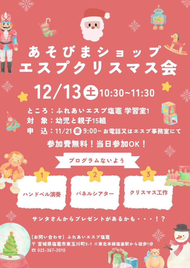ハンドベル演奏、パネルシアターやクリスマス工作などを行います!