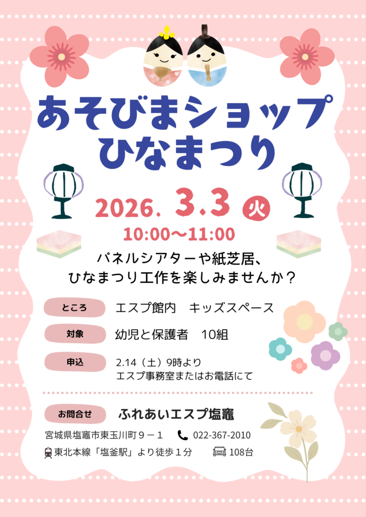 あそびまショップ「ひなまつり」を開催します🎎🌸