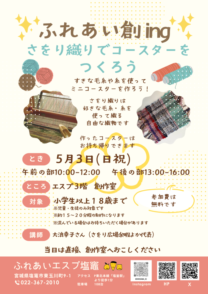 ふれあい創ing「さをり織りでコースターをつくろう」開催🧵 参加費は無料です♪