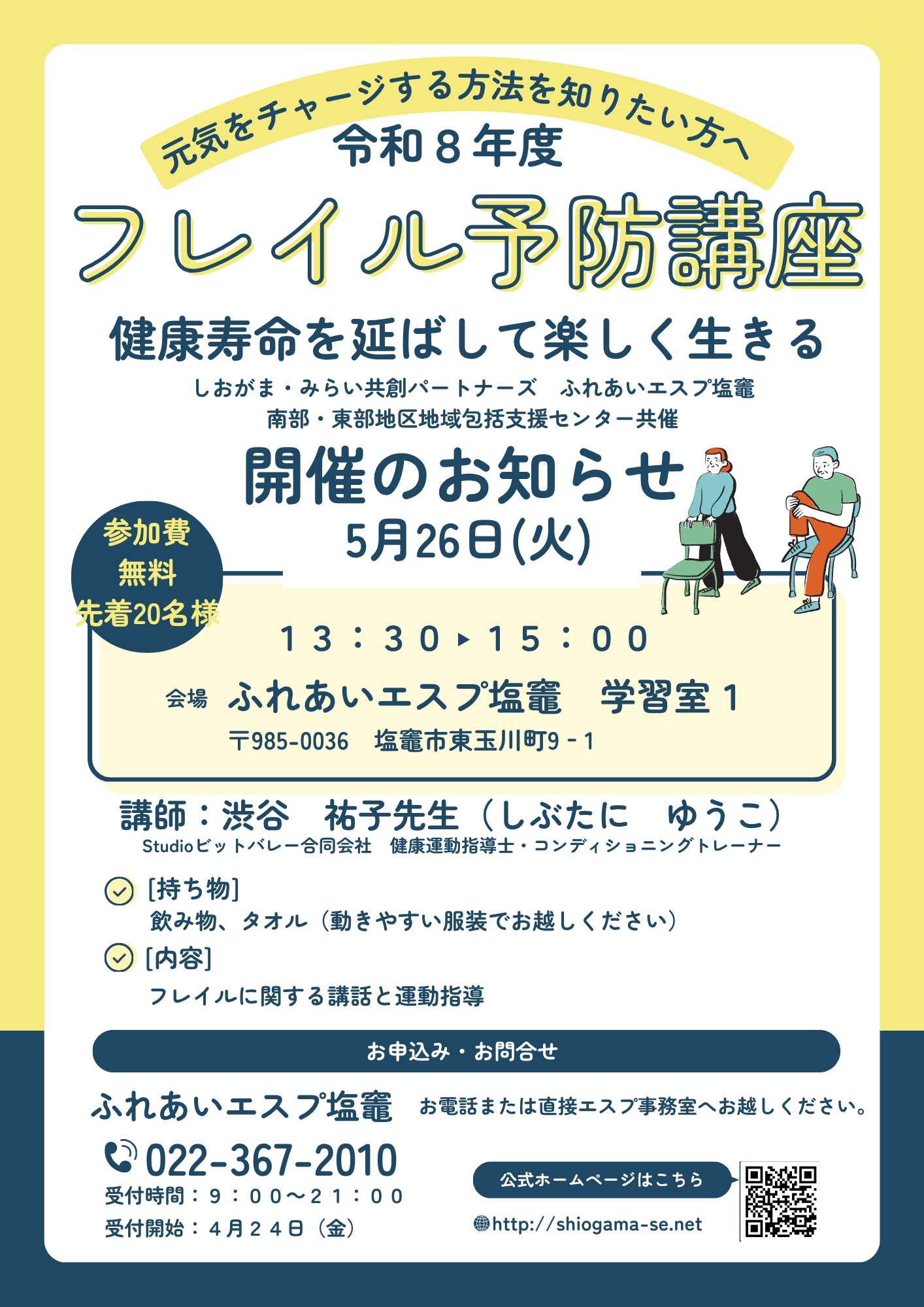 受付中 ふれあいエスプ塩竈に直接、またはお電話(022‐367‐2010)で