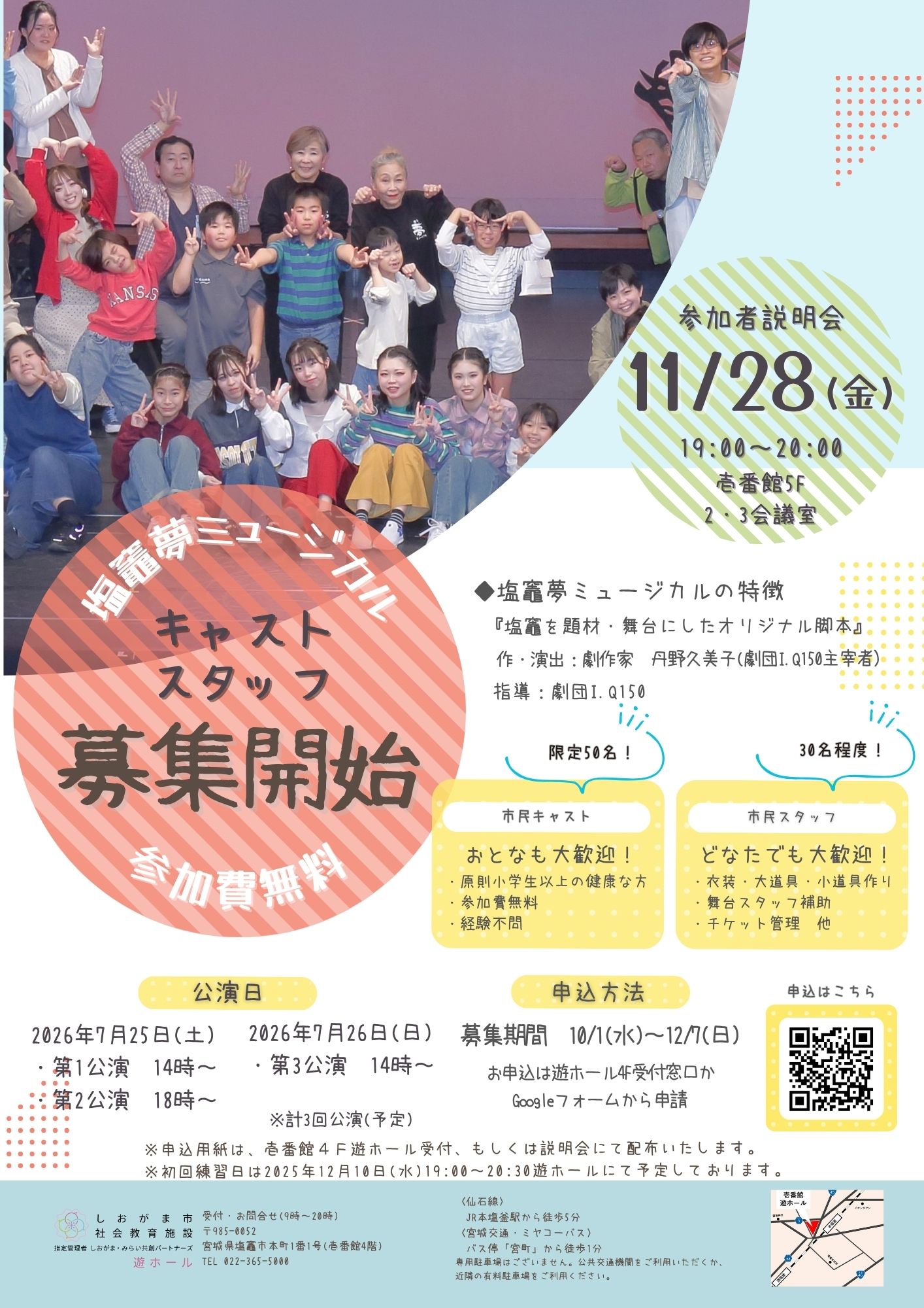 2026年7月公演 塩竈夢ミュージカル キャスト・スタッフ募集!!