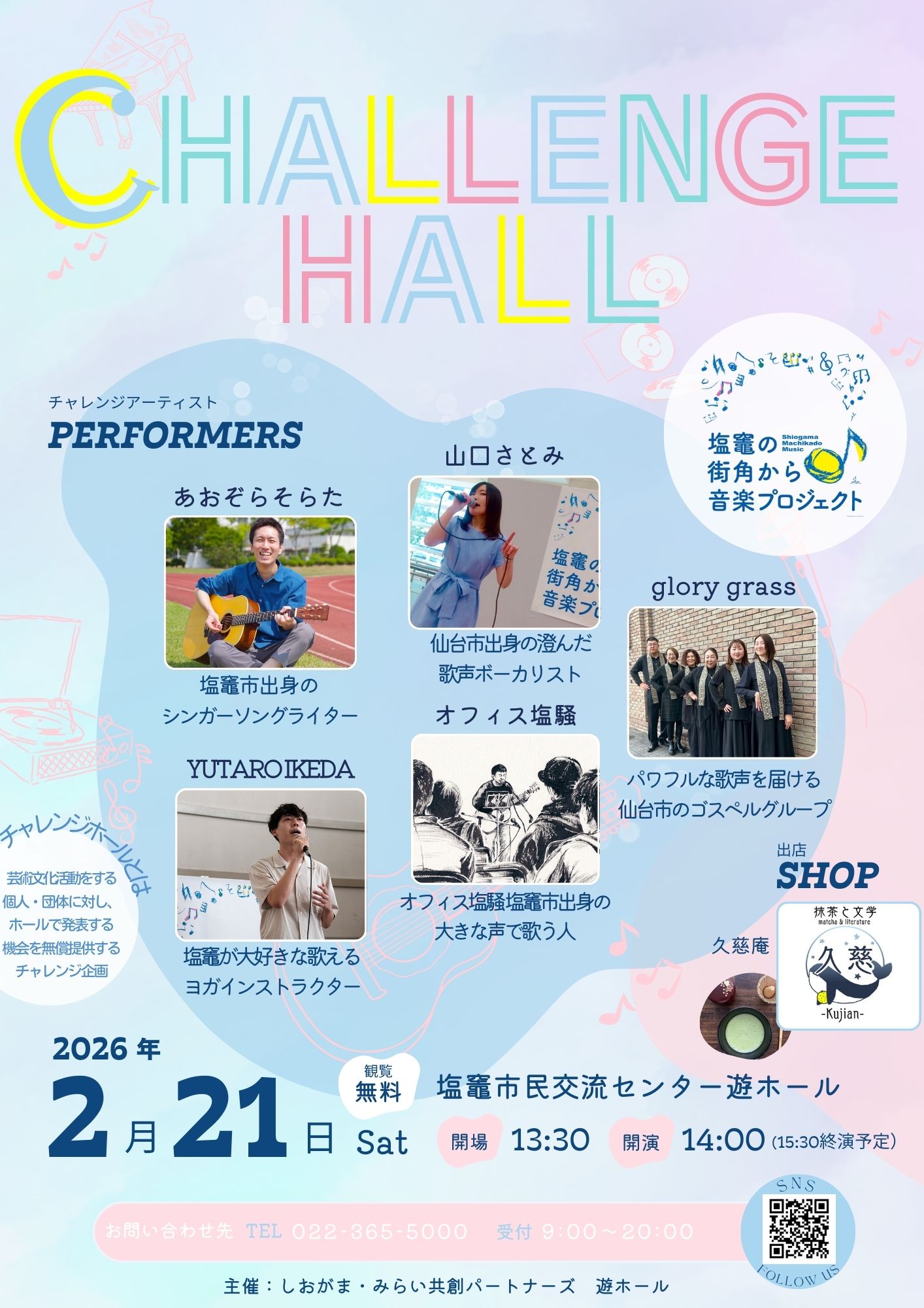 お問合わせ先【塩竈市民交流センター・遊ホール  TEL  022-365-5000/受付時間  9時~20時】