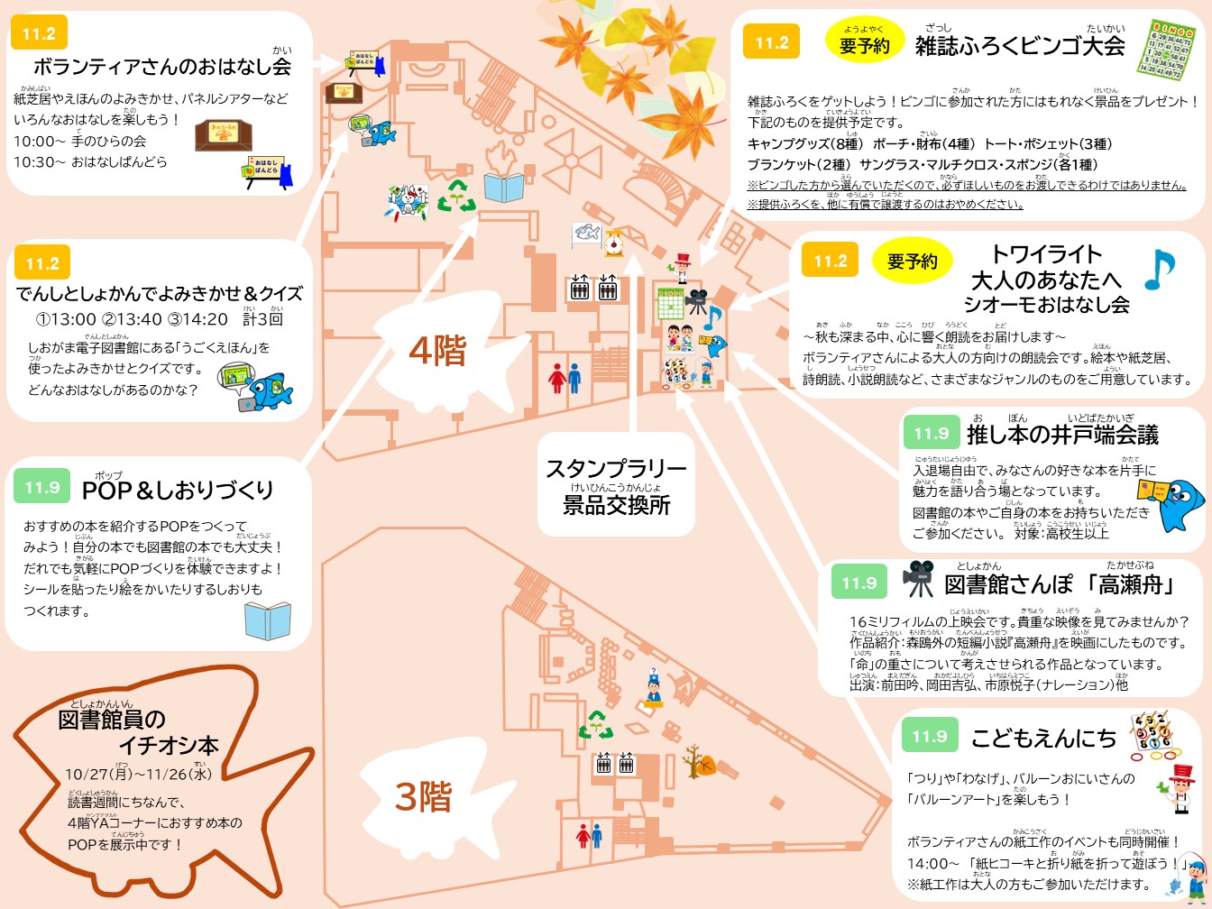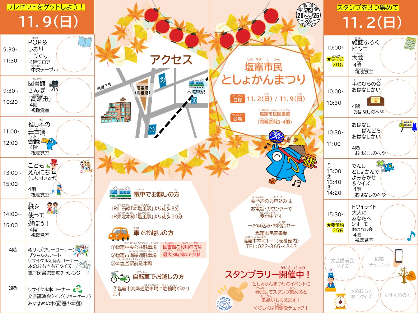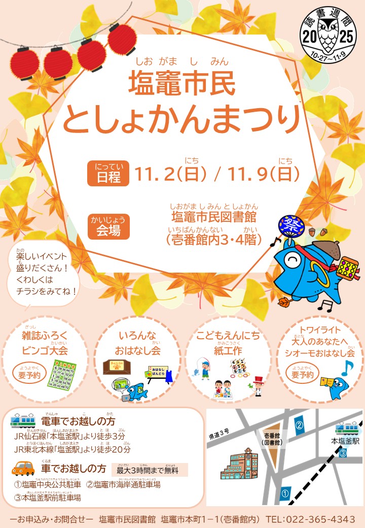塩竈市民図書館では秋の読書週間にあわせて「としょかんまつり」を開催します!