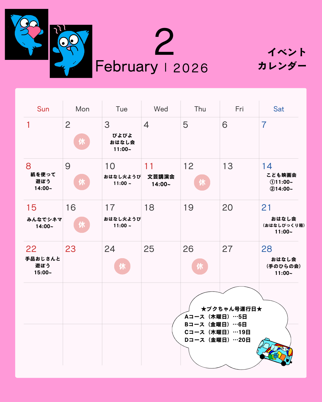 みんなでシネマ、おはなし会、ボランティアさんによるおはなし会や紙工作は申込不要・参加無料です。