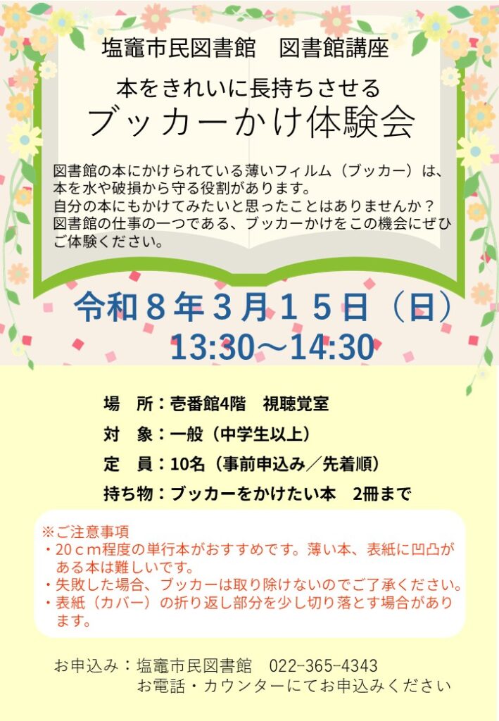 【3/15(日)】図書館講座「ブッカーかけ体験会」