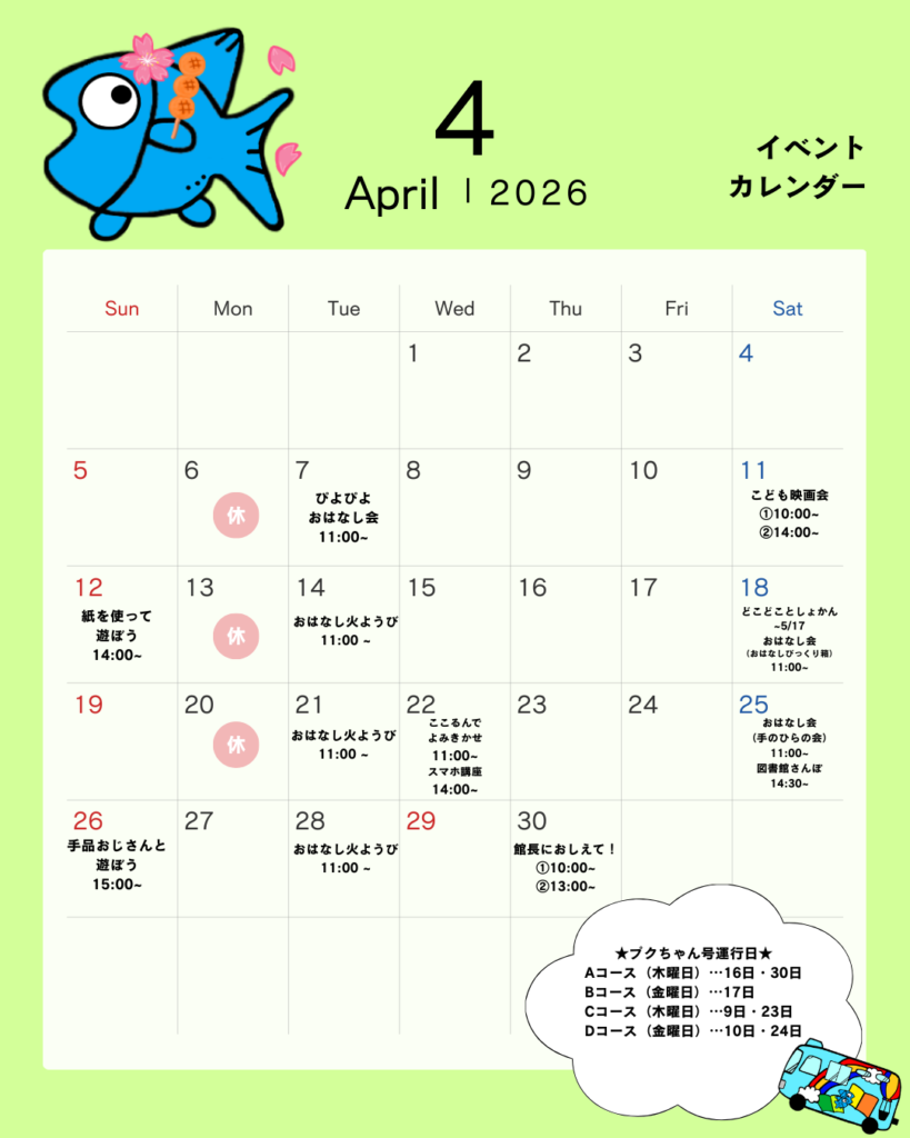 市民図書館の4月のイベント情報です🌸