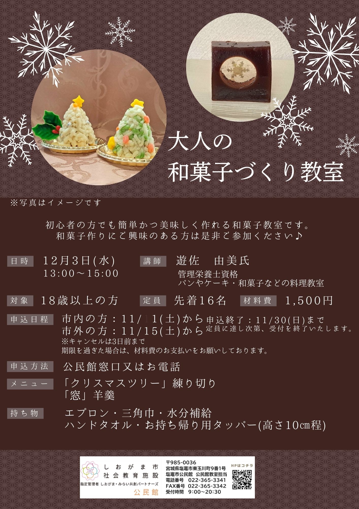 令和7年度公民館講座『大人の和菓子づくり教室』を開催します