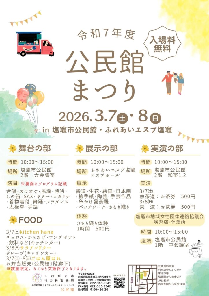 3月7日(土)~3月8日(日)の2日間で令和7年度 塩竈市公民館まつりを開催いたします!